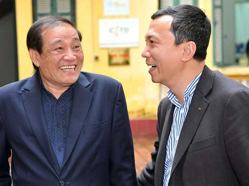 Theo cựu Chủ tịch VFF Nguyễn Trọng Hỷ (trái), chiếc xe này đang được Phó Chủ tịch VFF đương nhiệm Trần Quốc Tuấn (phải) sử dụng. Ảnh: N.HUY