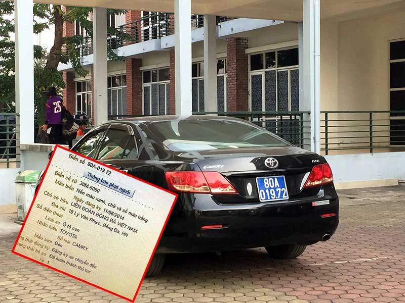 Chiếc Toyota Camry biển số xanh 80A-019.72 của VFF được đăng ký ngày 11-6-2014. Ảnh: V.THỊNH