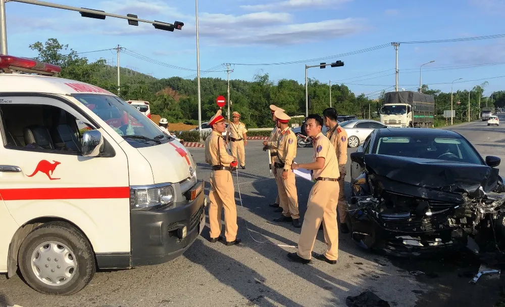 Lực lượng chức năng xử lý hiện trường vụ tai nạn. Ảnh: HẢI HIẾU