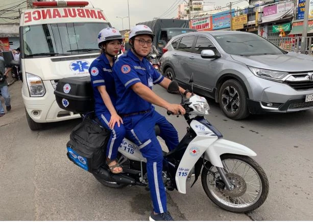 Tới hiện trường, BS sẽ đánh giá tình trạng hiện tại của bệnh nhân. Trường hợp bệnh nhân cần chuyển viện bằng xe cứu thương bốn bánh, BS gọi cho bệnh viện (BV) hoặc Trung tâm Cấp cứu 115 TP.HCM.