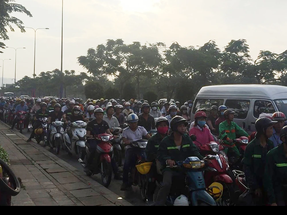 Ảnh hưởng từ vụ va chạm trên đại lộ khiến giao thông qua khu vực ùn ứ nghiêm trọng. Ảnh: H.TÂM