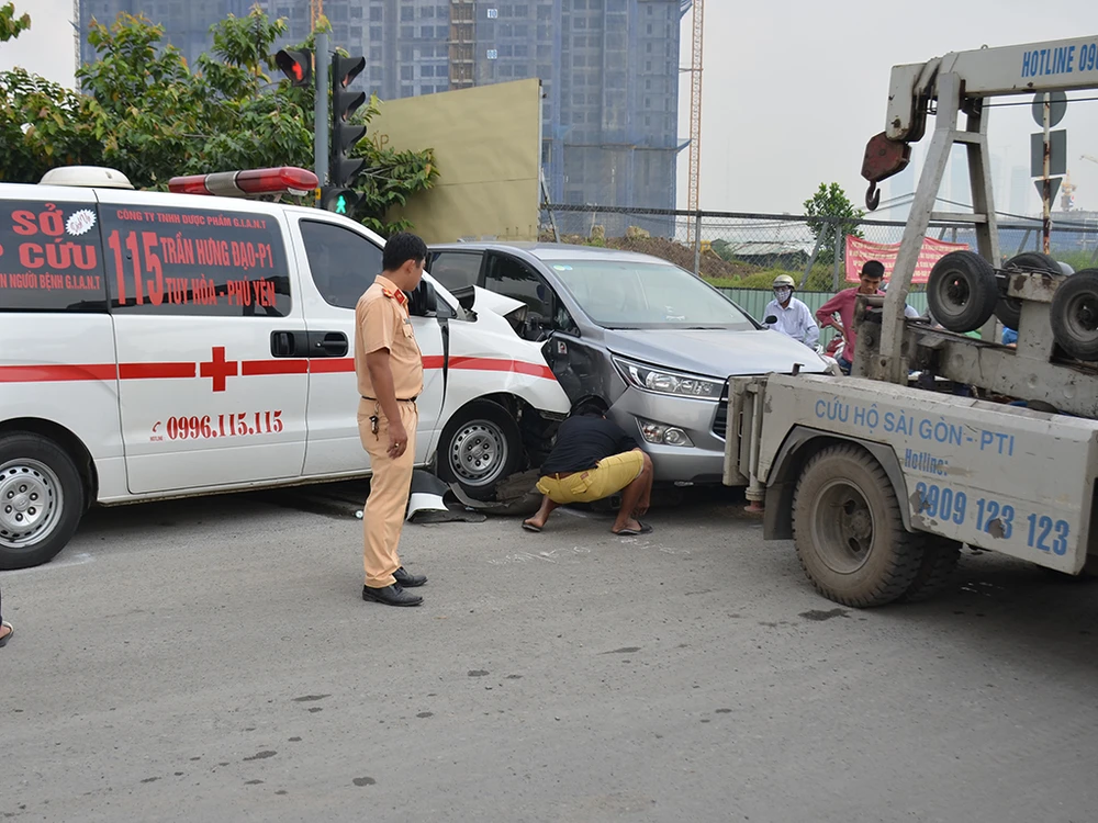 Theo thông tin ban đầu, sáng nay (31-8), xe cứu thương biển số Phú Yên chở bệnh nhân chạy trên đại lộ Mai Chí Thọ hướng từ xa lộ Hà Nội về hầm vượt sông Sài Gòn.