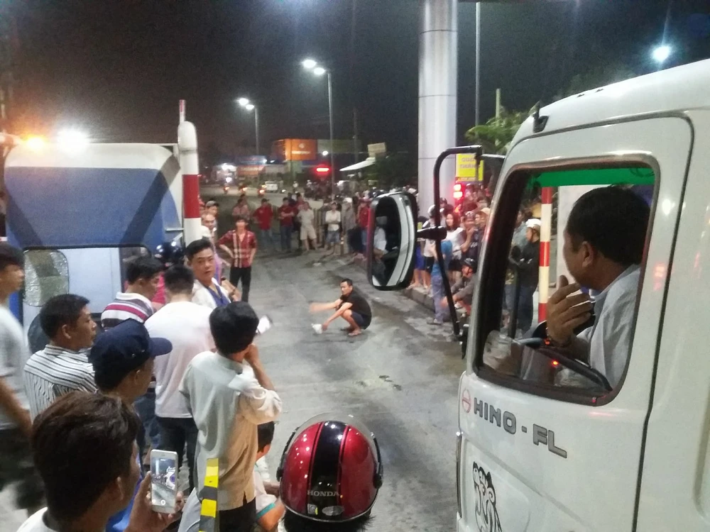Mãi đến 21 giờ 7 phút một làn hướng Hậu Giang lên có xe chịu đi qua nên thông thoáng được 2 phút thì lại ách tắc. Tại các làn có xe dừng để án ngữ có khá đông người tụ tập để xem cảnh ùn tắc và có tài xế xe tải chở hàng từ Cà Mau đã bức xức chửi cũng như to tiếng với nhân viên thu phí.