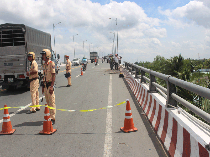 CSGT điều tiết giao thông trên cầu sau vụ tai nạn.