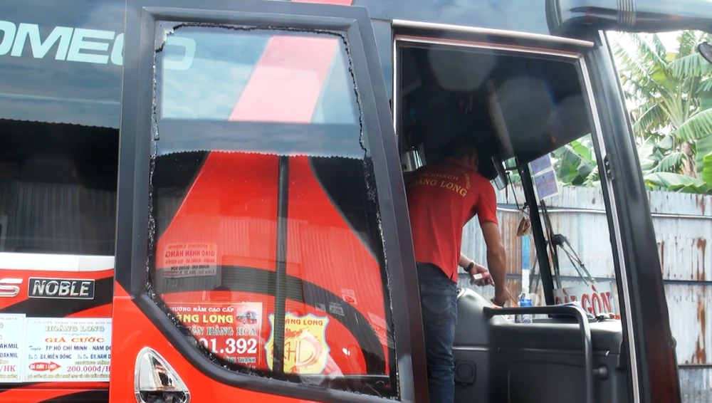 Khi xe chạy được khoảng 100 m tài xế cho xe dừng lại kiểm tra thì tiếp tục bị một thanh niên khoảng 19 tuổi trong nhóm thanh niên kể trên chạy tới chém liên tiếp vào kính cửa ra vào khiến kính bị bể. Tài xế xe, phụ xe la lớn, nam thanh niên này đã bỏ chạy. Vụ việc khiến nhiều hành khách trên xe hoảng loạn.