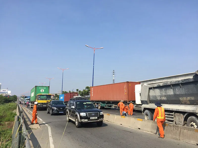 Khi đến gần ngã 3 đường dẫn vào khu công nghệ cao (phường Tân Phú, quận 9, TP.HCM) bất ngờ lao qua phải, tông vào phía thùng bên trái xe ben biển số Đồng Nai đang lưu thông cùng chiều.