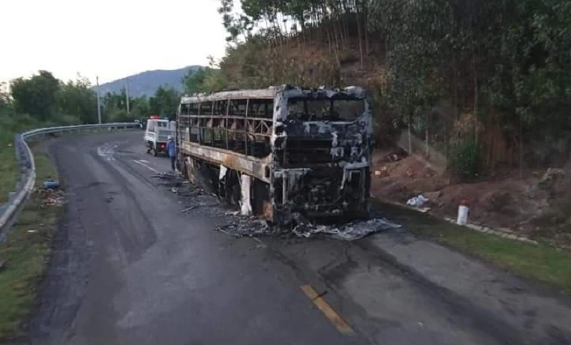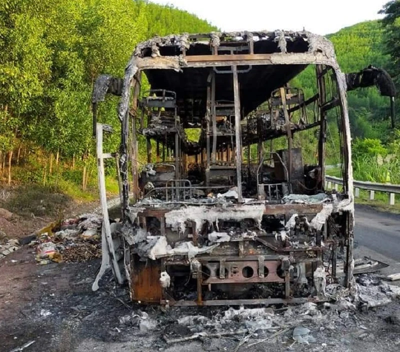 Tài xế cho xe dừng lại bên đường rồi hô hoán cho 40 hành khách trên xe thoát thân trước khi xe bị thiêu rụi.