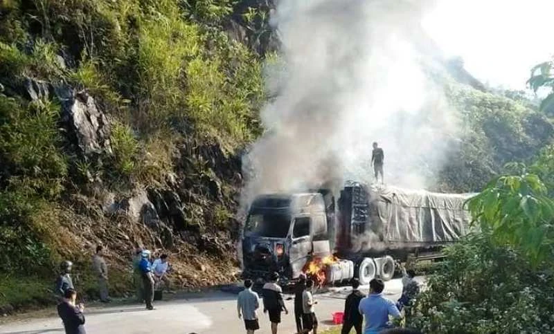 Theo đó, sáng 21-12, xe đầu kéo biển số 37R-006.36 chở khoảng 70 tấn gạo từ miền xuôi lên đến đầu dốc Pù Nguồn (thuộc bản Hiệp An, xã Thông Thụ, huyện Quế Phong) bỗng bốc cháy từ đầu xe. Tài xế lập tức nhảy xuống và kêu gọi người dân, kiểm lâm... tham gia dập lửa cứu xe, cứu gạo.