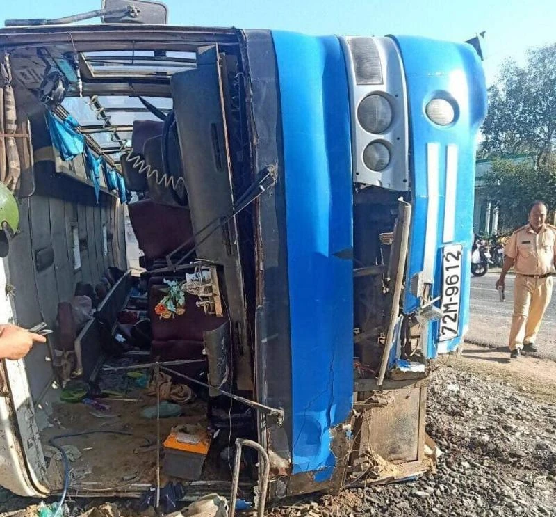 Sáng nay (9-12), xe đưa rước công nhân loại 50 chỗ biển số 72M-9612 (chưa rõ danh tính tài xế) chạy trên QLN2 đưa công nhân đến nơi làm việc. Khi đến đoạn Km 16 QLN2 thuộc xã Hòa Khánh Đông, huyện Đức Hòa (Long An) thì xe bị lật ngang.