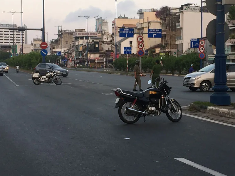 Đường từ quận 1 sang quận 2 bị phong tỏa để phục vụ xử lý hiện trường.