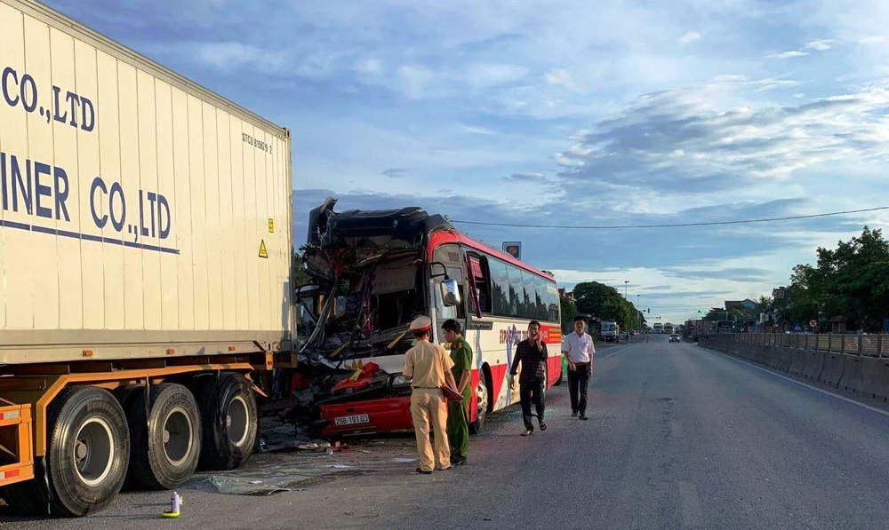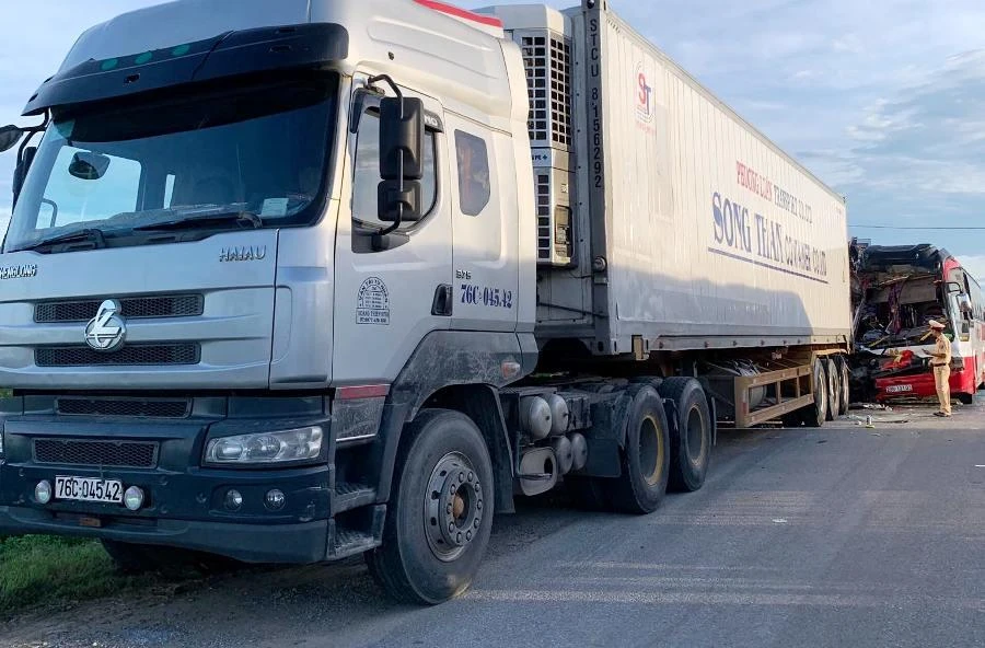 Thời điểm này, xe khách du lịch 29B-191.03 chở hơn 50 người từ Bắc Giang vào Nghệ An đã tông vào đuôi xe đầu kéo 76C-045.42 đang dừng đỗ bên quốc lộ.
