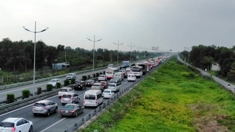 Chiều 27-5, một vụ TNGT xảy ra trên tuyến cao tốc TP.HCM-Trung Lương khiến phương tiện các loại qua lại nơi này bị ùn ứ kéo dài.