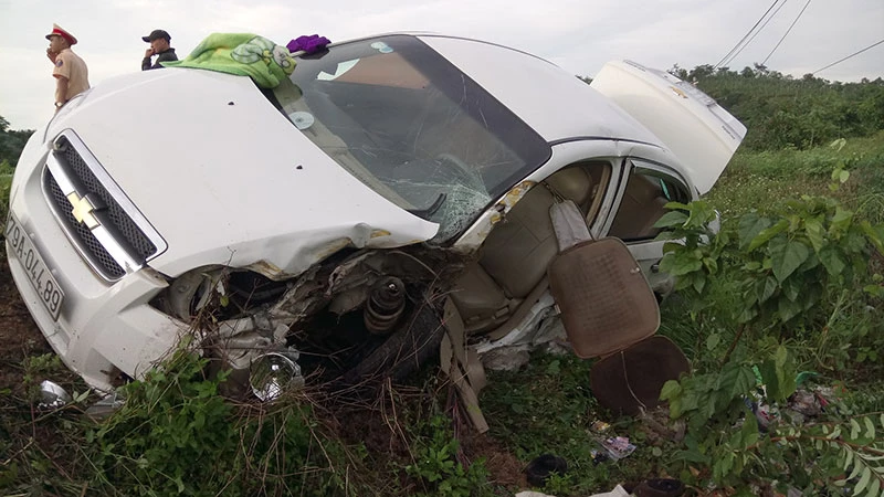 Hậu quả khiến tài xế ô tô tử vong tại chỗ, phần sườn trái bị gãy cửa, nhiều phụ tùng xe như thắng, gương kính gãy, vỡ nát. Gạch văng đầy đường.
