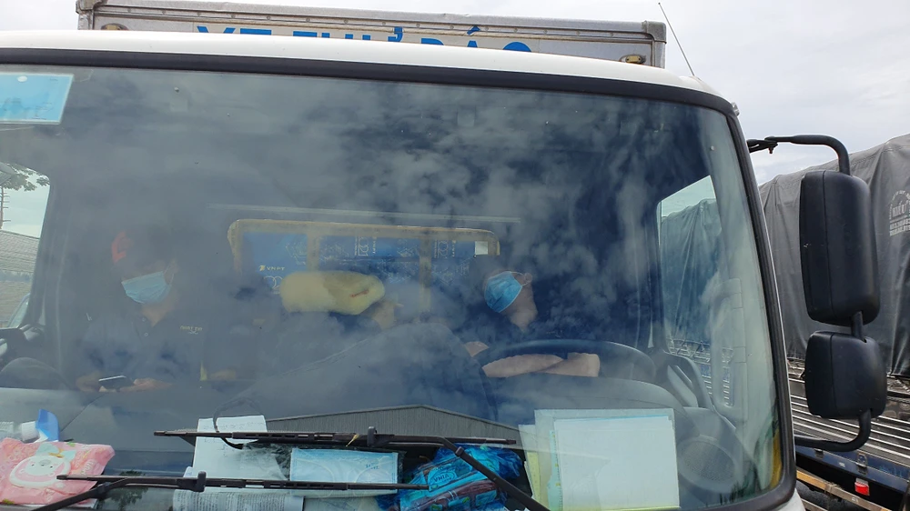 Có tài xế tranh thủ ngủ để chờ đến lúc được giải phóng hàng hoá