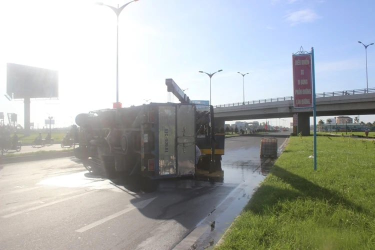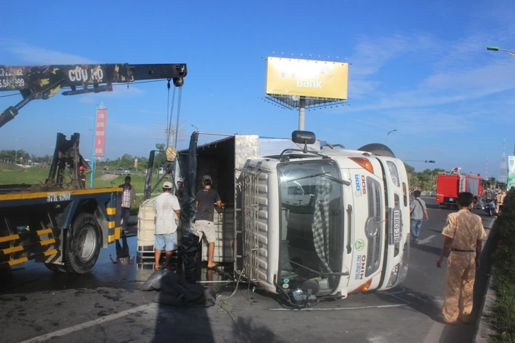 Thông tin ban đầu từ CSGT cho biết, xe tải biển kiểm soát 51C- 53081 bị lật do đi từ hướng Quang Trung vào, khi ôm cua các thùng phụ gia chất trên xe không ràng buộc nên khi xe vào cua đã xô đẩy và dồn các thùng về một phía từ đó khiến xe mất thăng bằng và bị lật xuống đường.