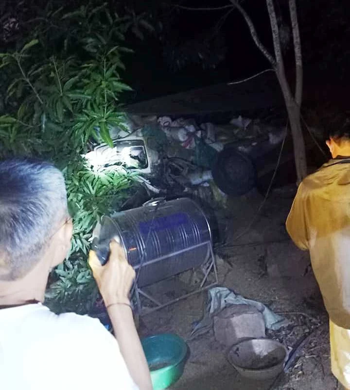 Trong đêm, rất đông người dân ra hiện trường cùng cơ quan chức năng giúp đưa các bao tải lúa lên và bới đống đổ nát tìm kiếm nạn nhân. Sau 4 tiếng đồng hồ, thi thể tài xế Tư được đưa ra.