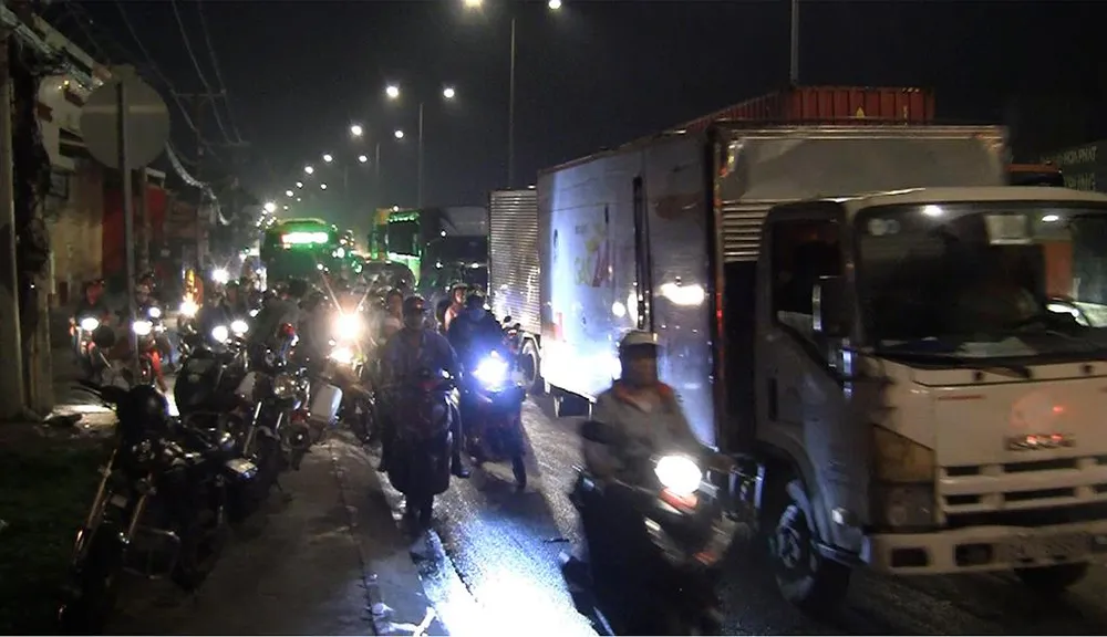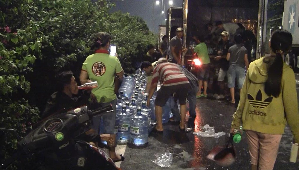 Chiều tối ngày 30-5, xe tải mang BKS: 51C-105.24 chở đầy xe nước đóng bình loại 21 lít lưu thông trên quốc lộ 1 theo hướng từ An Sương đi ngã tư Bình Phước.