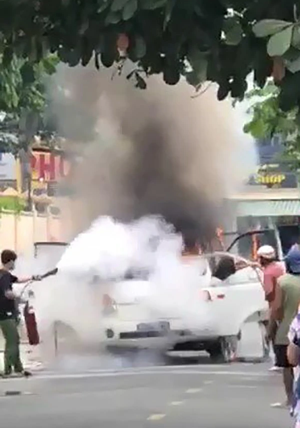 “Xe cháy, có cả tiếng nổ nhỏ. Tôi chạy ra thì thấy khói lửa dữ dội” – một người dân ở gần hiện trường nói.