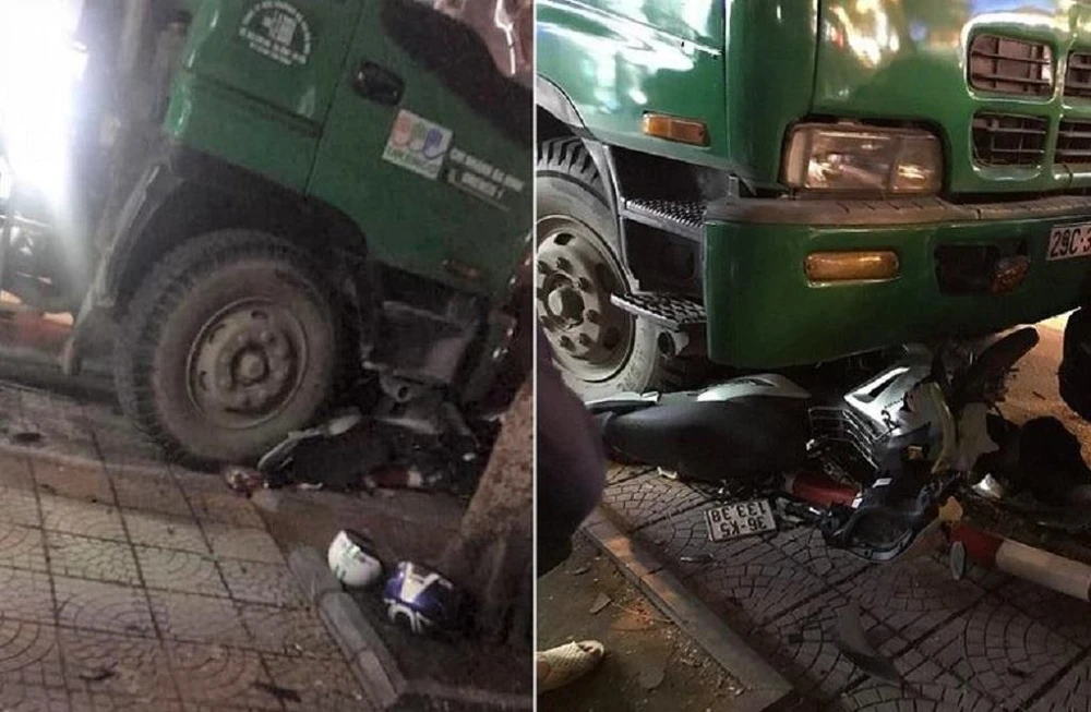 Nhân chứng tại hiện trường cho biết vào thời điểm trên, hai thanh niên đi xe máy biển số tỉnh Thanh Hóa đang dừng chờ đèn đỏ thì một xe chở rác từ phía sau tông trúng.