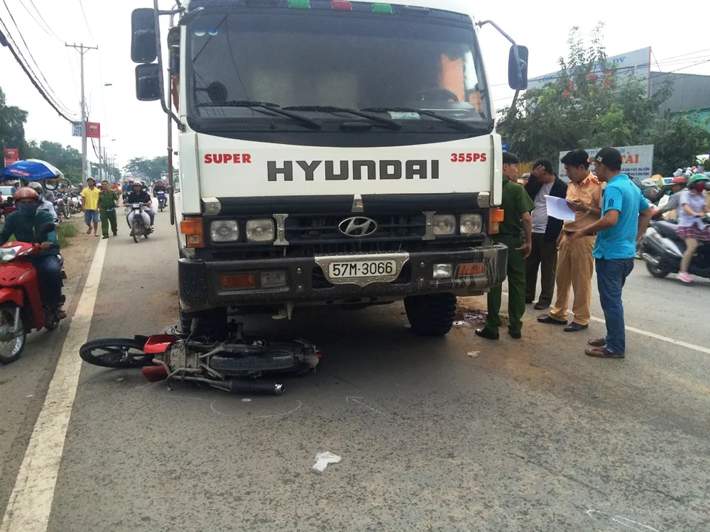 Cú va chạm khiến anh Ng. ngã ra đường, xe máy văng vào bánh trước xe ben chở cát biển số 57M… lưu thông ngược chiều. Nạn nhân được nhanh chóng đưa đi bệnh viện cấp cứu nhưng không qua khỏi.
