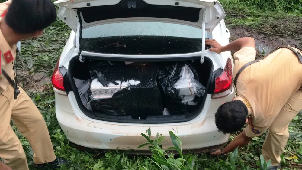Trong cốp sau và ghế sau của chiếc xe chứa rất nhiều thuốc lá lậu.
