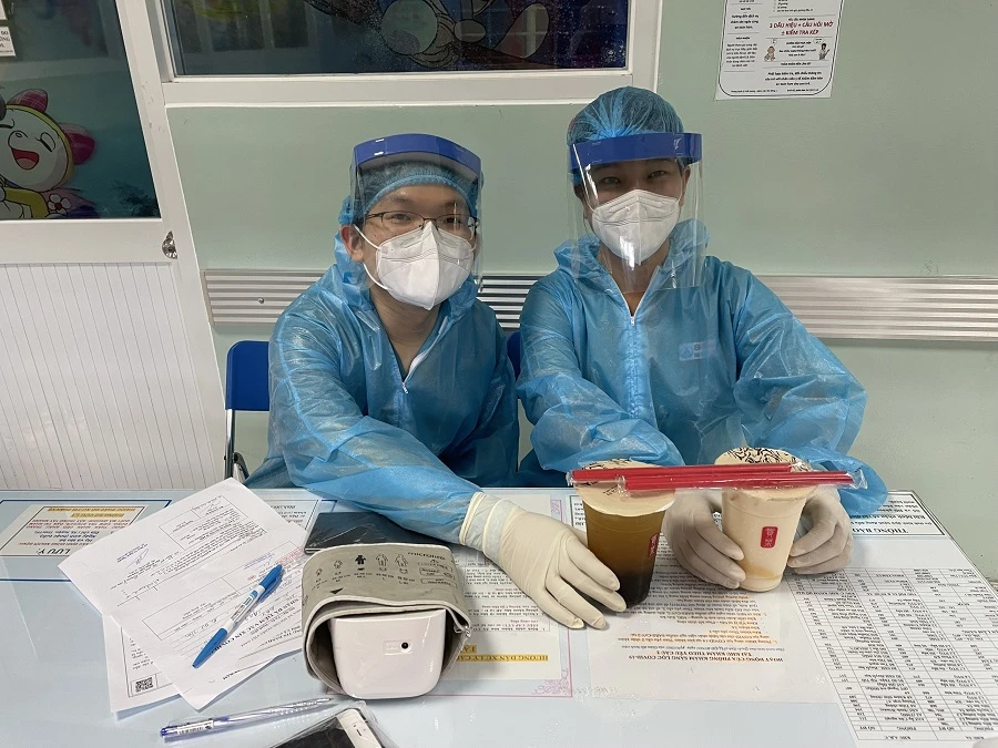 Đội ngũ y bác sỹ điều dưỡng tham gia phòng chống dịch đa phần trẻ tuổi nên trà sữa đúng sở thích là niềm động viên kịp thời. Ảnh: GC