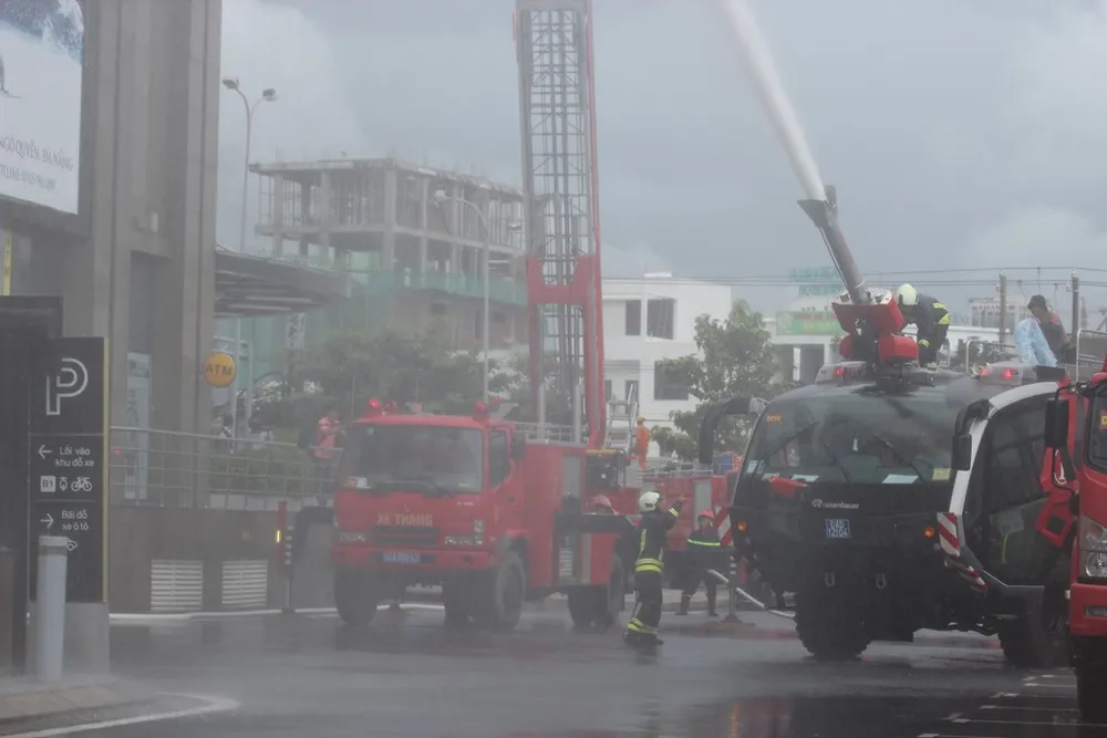 Sáng 16-10, nhiều lực lượng như Cục Cảnh sát PCCC và cứu nạn, cứu hộ, Công an TP Đà Nẵng, Sư đoàn Không quân 372, Quân khu 5, Bộ Tư lệnh Vùng 3 Hải quân, công an hai tỉnh Quảng Nam và Thừa Thiên-Huế, công an các địa phương tham gia... diễn tập chữa cháy quy mô lớn tại TP Đà Nẵng.