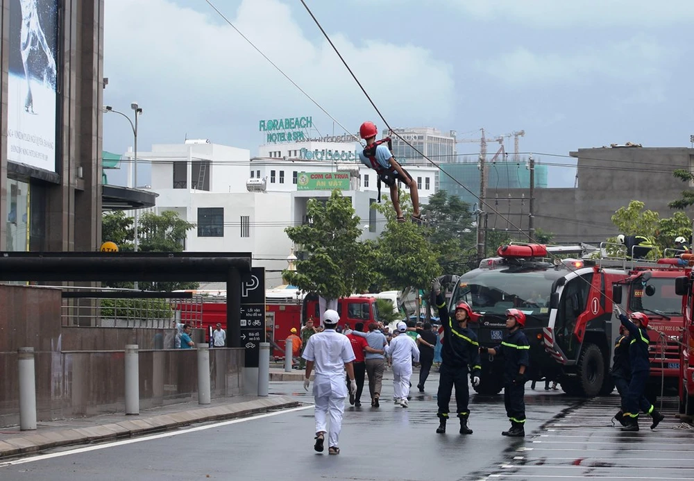 Tình huống giả định là xảy ra khí gas bị rò rỉ từ vị trí khớp nối giữa bếp nấu với đường ống dẫn khí của hệ thống cấp gas trung tâm dẫn đến sự cố cháy nổ tại nhà hàng Han River thuộc tầng 3 của tòa nhà khách sạn Vinpearl Condotel Riverfront Đà Nẵng.