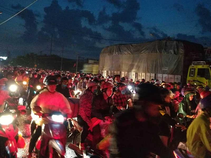Theo ghi nhận, càng về tối dòng xe di chuyển theo các tuyến từ các tỉnh Bến Tre, Trà Vinh, Sóc Trăng,… trên tuyến QL60 hướng về TP.HCM càng đông. Đến 19 giờ cùng ngày, lượng xe qua đây vẫn chưa hạ nhiệt.