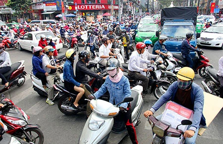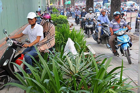 Vỉa hè cũng không đủ chỗ để các phương tiện lưu thông. Ảnh: HOÀNG GIANG