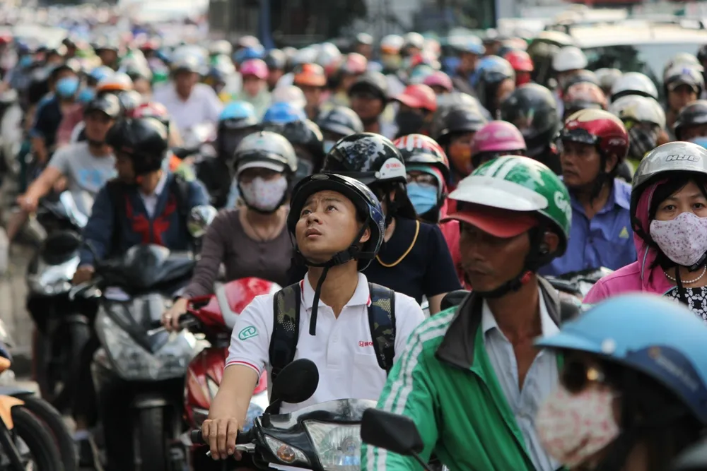 Nhiều người tỏ ra mệt mỏi khi di chuyển qua tuyến đường kẹt xe.