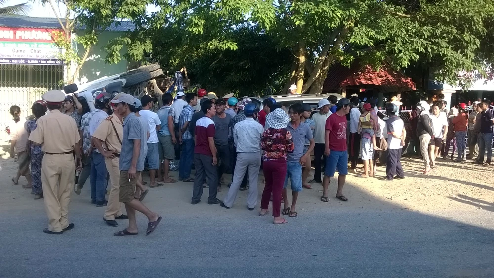 Người dân hiếu kỳ xúm lại xem vụ tai nạn làm đường kẹt nhiều giờ liền. Ảnh: CTV.