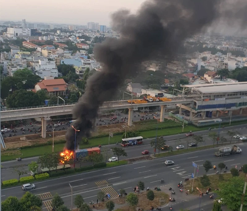 Chiều 10-1, một chiếc xe container đang di chuyển trên Xa lộ Hà Nội (TP.HCM) theo hướng từ Suối Tiên vào cầu Sài Gòn. Khi vừa qua khỏi ngã tư Thủ Đức, phần đầu của xe container đột ngột bốc cháy.