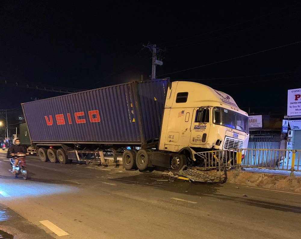 Thời điểm trên, xe đầu kéo 61C.11… lưu thông theo hướng từ ngã tư Hàng Xanh về ngã tư Bình Phước, khi còn cách ngã tư Bình Phước khoảng 2 km, chiếc xe bất ngờ lao vào dải phân cách và cày nát khoảng hơn 20 m.