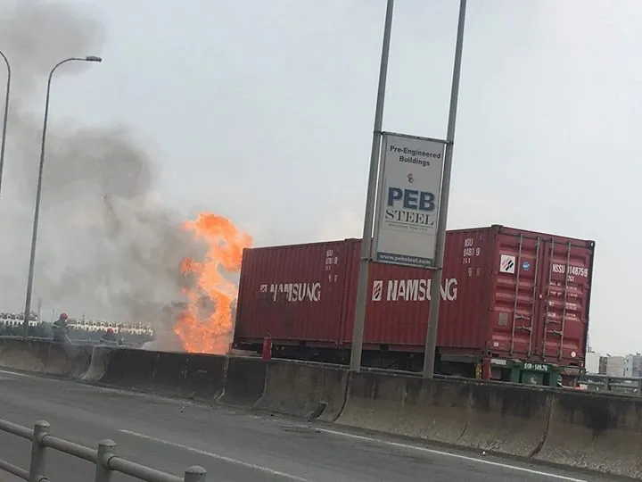 Vụ cháy xe container xảy ra vào chiều nay (25-10).