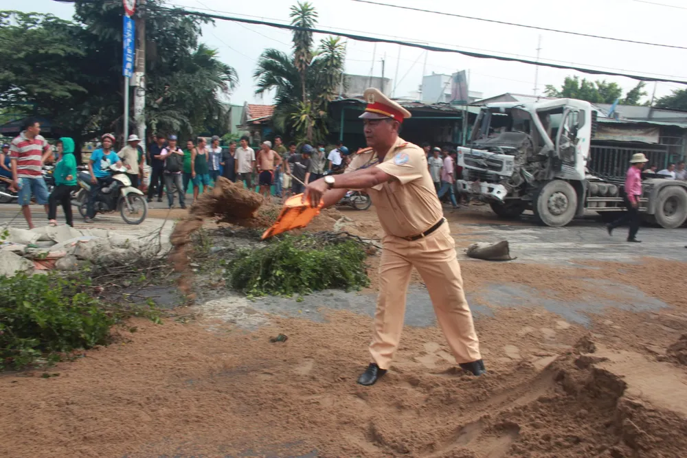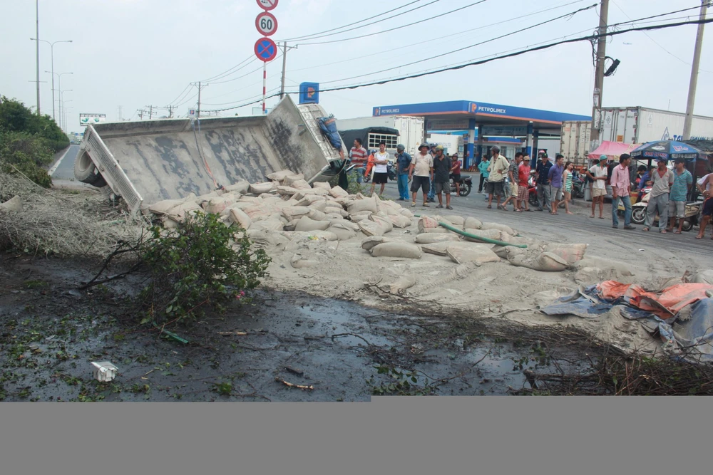 Ghi nhận tại hiện trường, cả hai phương tiện choán hết phần đường quốc lộ 1 và hư hỏng nặng. Dầu nhớt nằm vương vãi trên quốc lộ, hàng chục bao xi măng tràn ra đường, cột điện, giải phân cách bị húc văng khỏi vị trí nằm vương vãi trên đường. Vụ tai nạn còn khiến giao thông trên quốc lộ 1A rơi vào tình trạng tê liệt, hàng ngàn xe xếp hàng dài nhích từng mét trên đường.
