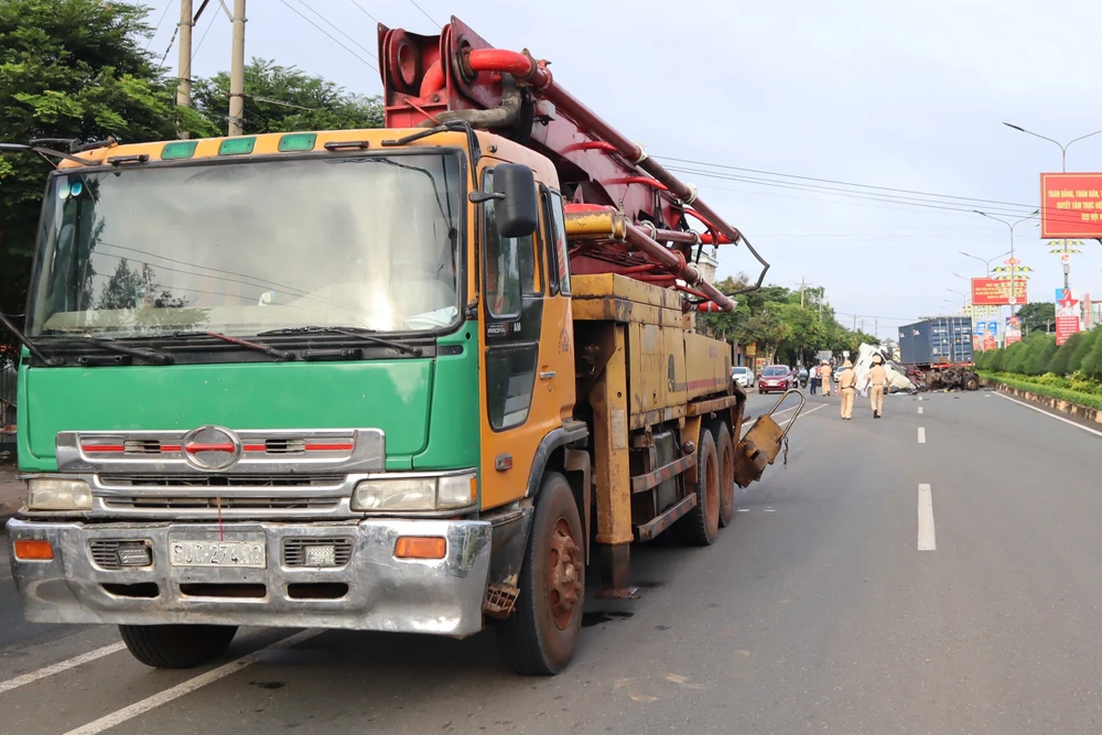 Đến trưa 26-8, Công an TP Đồng Xoài (Bình Phước) đã hoàn thành khám nghiệm hiện trường vụ tai nạn giao thông giữa xe container và xe bơm bê tông trên quốc lộ 14 (phường Tân Bình, TP.Đồng Xoài) khiến một người chết, hai người bị thương.