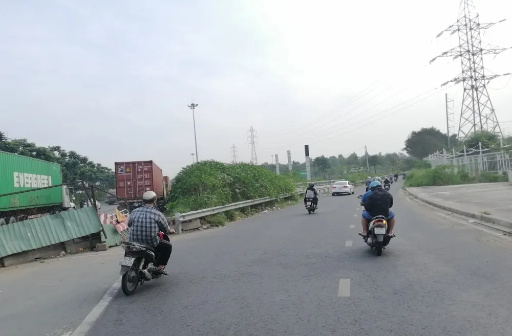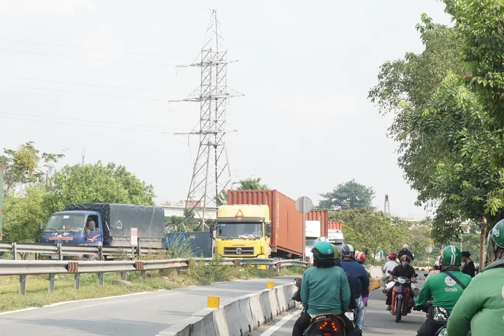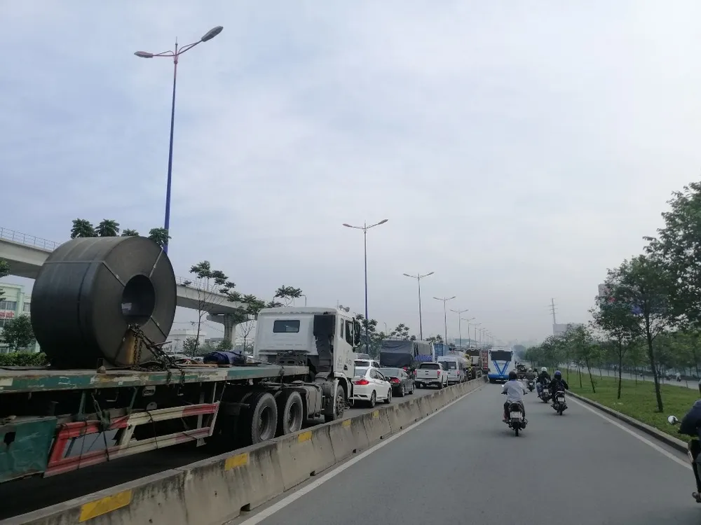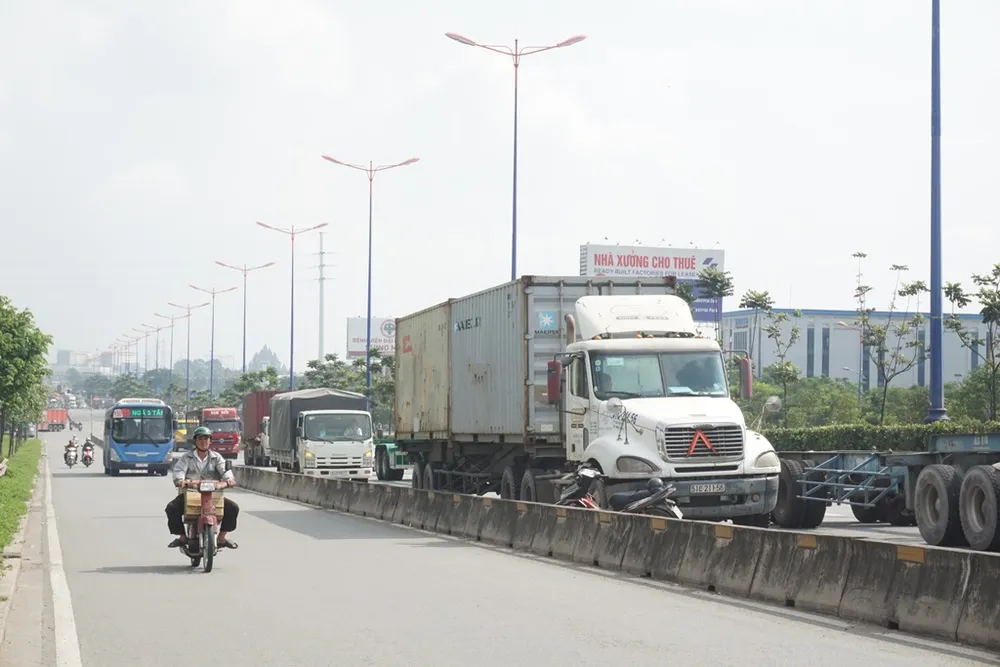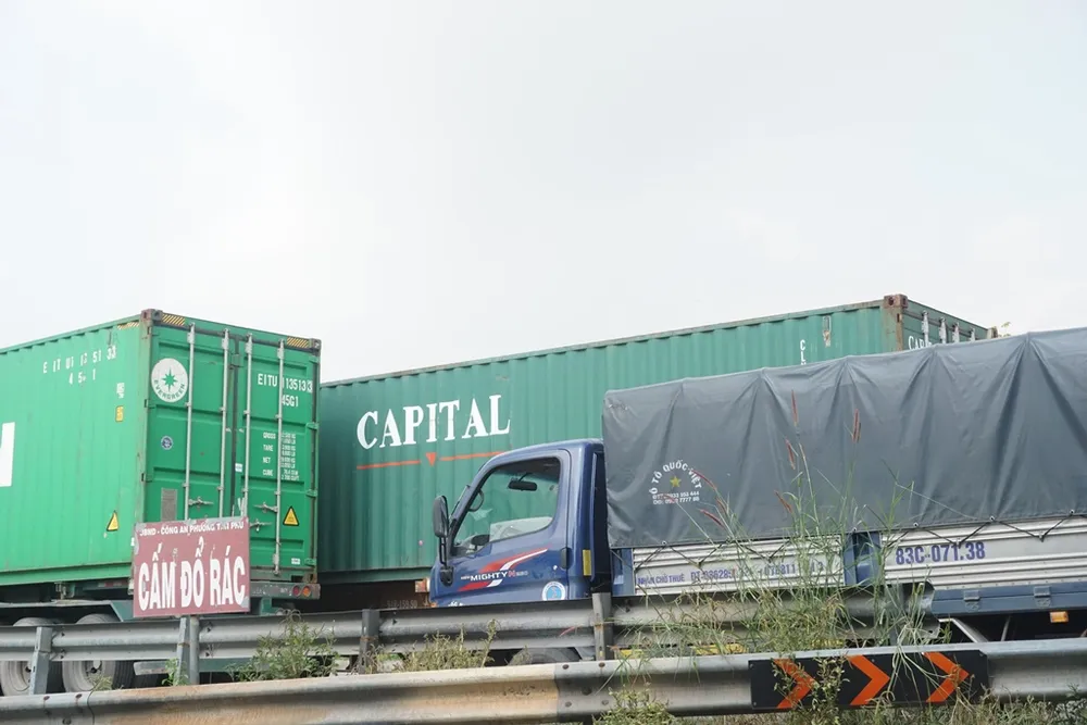 Theo ghi nhận của PV, dọc tuyến đường xa lộ Hà Nội lưu lượng xe qua lại luôn đông nghẹt khiến cho con đường đã hẹp lại càng hẹp hơn, nhiều xe container đậu thành hàng dài.