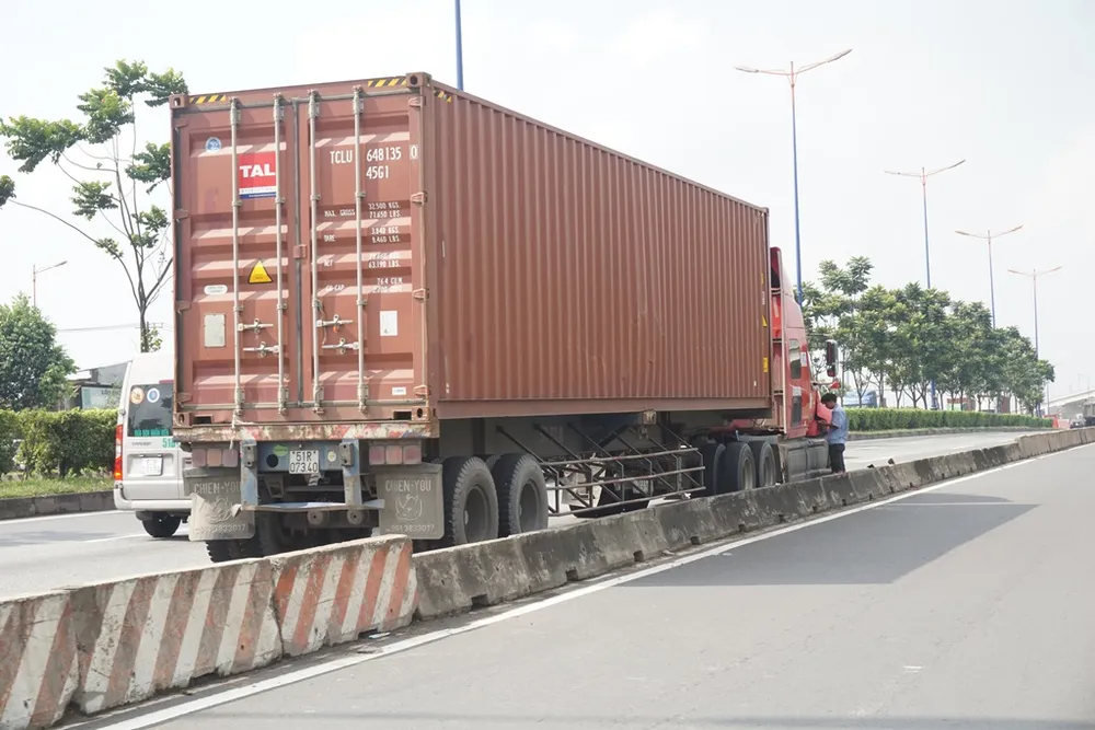 Tài xế container đậu xe giữa đường cả ngày lẫn đêm.