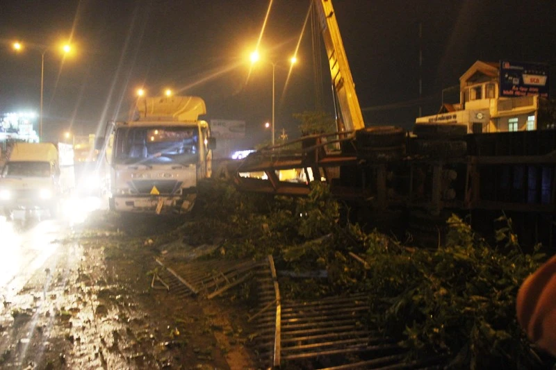 Tại hiện trường, đầu xe hư hỏng nặng, nhiều mét dải phân cách bị cán bể, hàng rào sắt bị húc văng. Do chiếc xe nằm chắn ngang đường nên giao thông ùn ứ nghiêm trọng. Vụ tai nạn không gây thiệt hại về người.