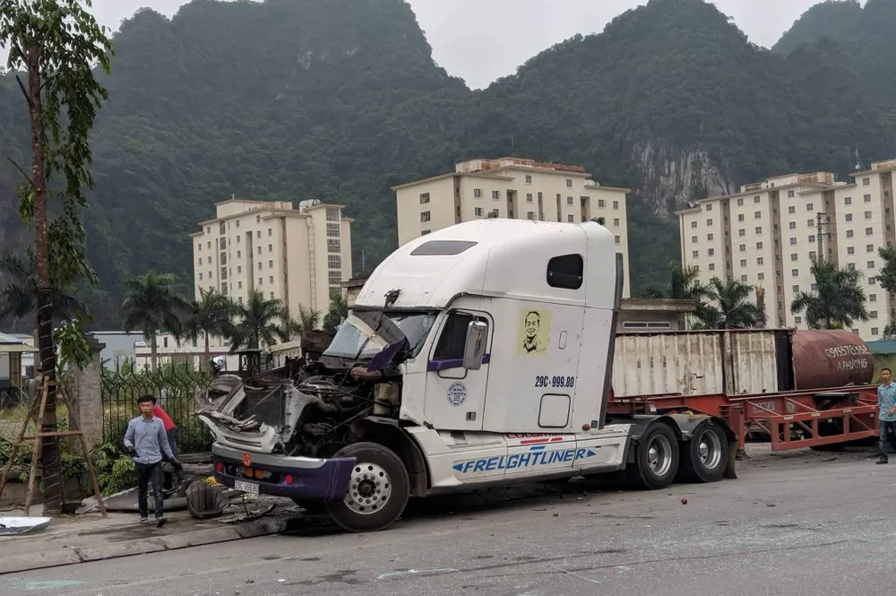 Sáng 19-10, tại khu vực ngã 3 đường tránh Quang Hanh trên quốc lộ 18 (TP Cẩm Phả, Quảng Ninh), chiếc xe đầu kéo chở container 29C-999.80 chạy từ quốc lộ 279 ra quốc lộ 18 đã tông trúng đuôi xe khách 15B-005.09 chạy hướng Hạ Long-Cẩm Phả.