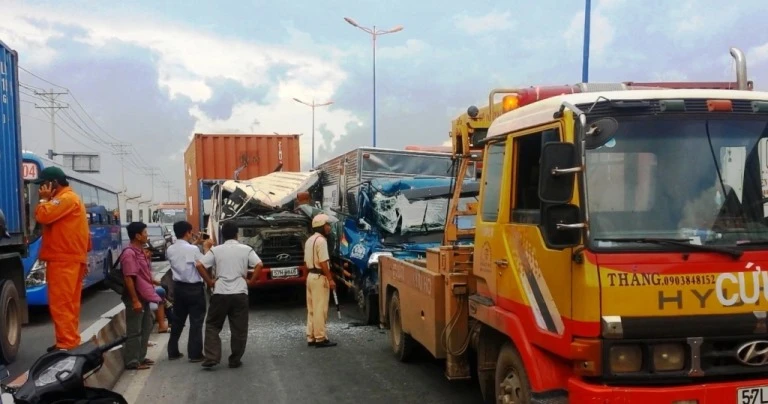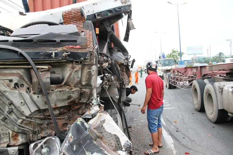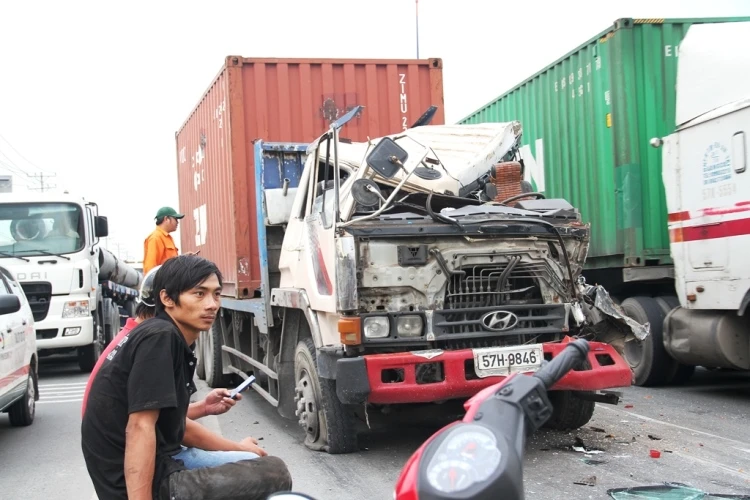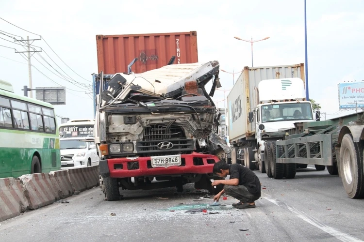 Vụ tai nạn xảy ra vào khoảng 15 giờ 45 phút ngày 25-9, chiếc xe container BKS: 57H – 9846 (chưa xác định được danh tính tài xế) lưu thông trên xa lộ Hà Nội theo hướng từ ngã tư Thủ Đức về cầu Sài Gòn. Khi cách ngã tư Bình Thái khoảng 200m thì bất ngờ mất lái đâm vào dải phân cách ở bên phải và tông vào một xe tải do anh Thái Ngọc Anh (SN 1977, Quận 12) điều khiển chạy cùng chiều phía trước.