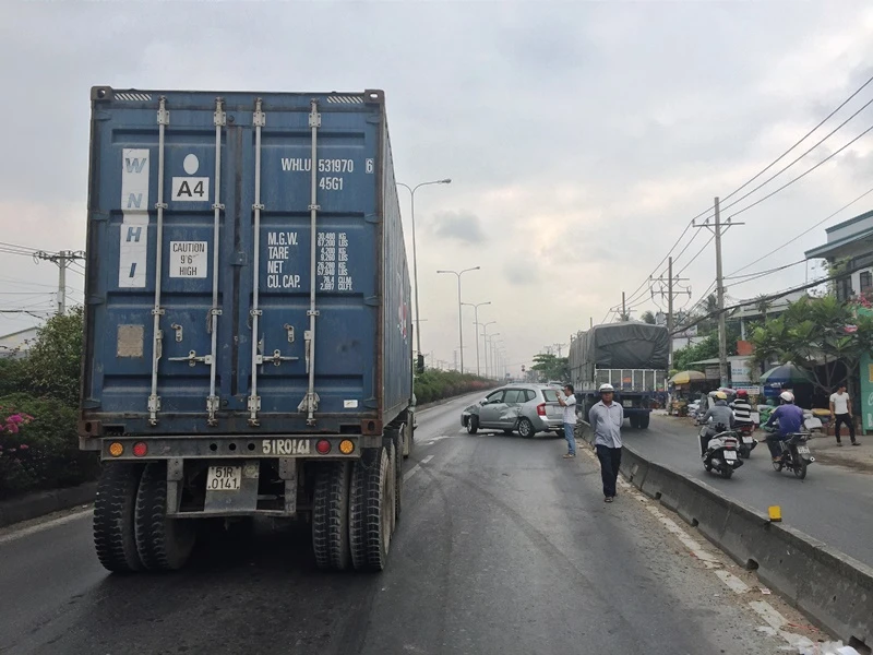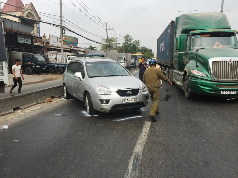 Sáng 11-4, xe container biển số TP.HCM lưu thông trên quốc lộ 1A theo hướng từ ngã tư An Sương về ngã tư Thủ Đức. Khi cách giao lộ Vườn Lài khoảng 200 m thì va chạm với ô tô bảy chỗ biển số TP.HCM do một người đàn ông khoảng 35 tuổi đang chở vợ trên đường về quê.