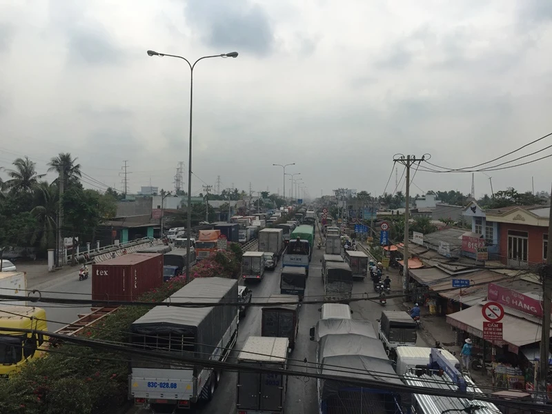 Vụ va chạm khiến giao thông khu vực bị ùn ứ nhiều km.