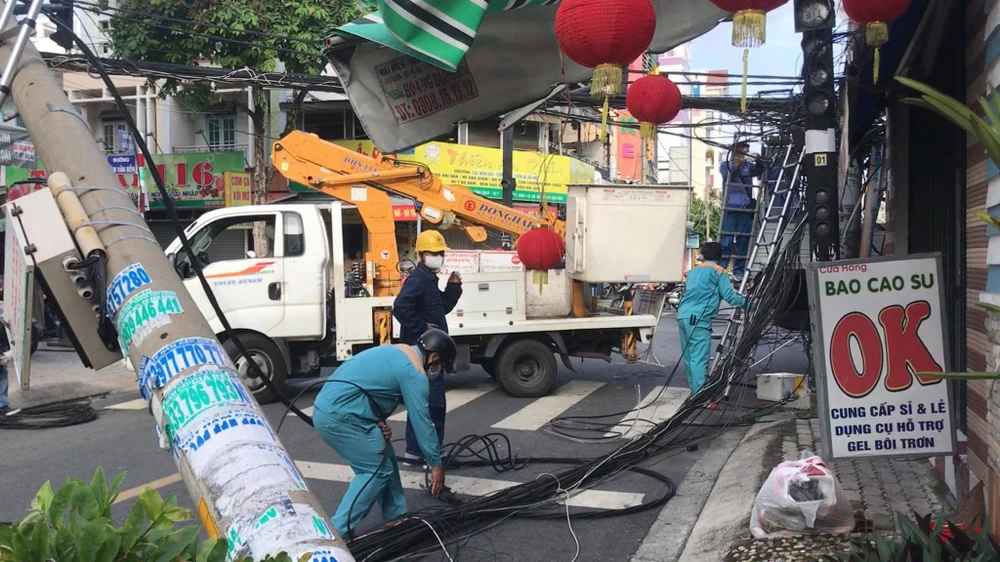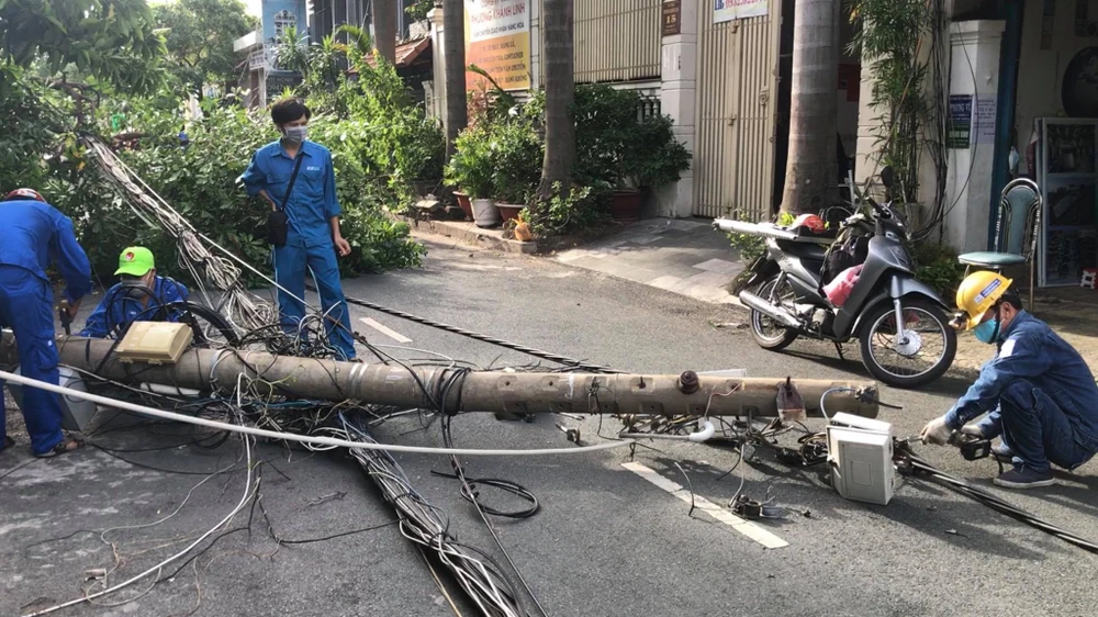 Hiện Tổng công ty Điện lực TP.HCM đang triển khai kéo dây điện cho nhà dân, đồng thời trồng trụ điện lại để khắc phục sự cố về điện.