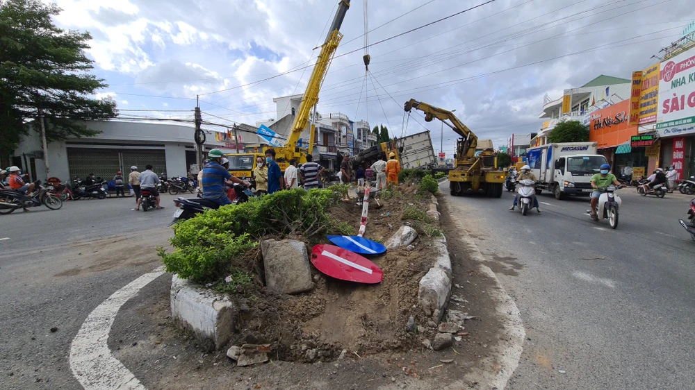 Dải phân cách quốc lộ 1 bị hư hỏng. Ảnh: CÔNG NGUYÊN