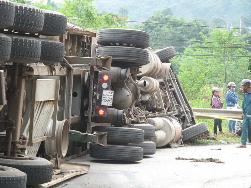 Khi đến đoạn qua xã Nhân Cơ, huyện Đắk R’lấp, Đắk Nông, xe đổ dốc thì mất lái lật ngang giữa quốc lộ. Sau đó xe trượt dài trên đường tông trúng xe máy do anh Mai Thanh H. (trú phường Nghĩa Trung, thị xã Gia Nghĩa, Đắk Nông) điều khiển làm anh tử vong; tài xế và phụ xe đầu kéo bị thương nhẹ.