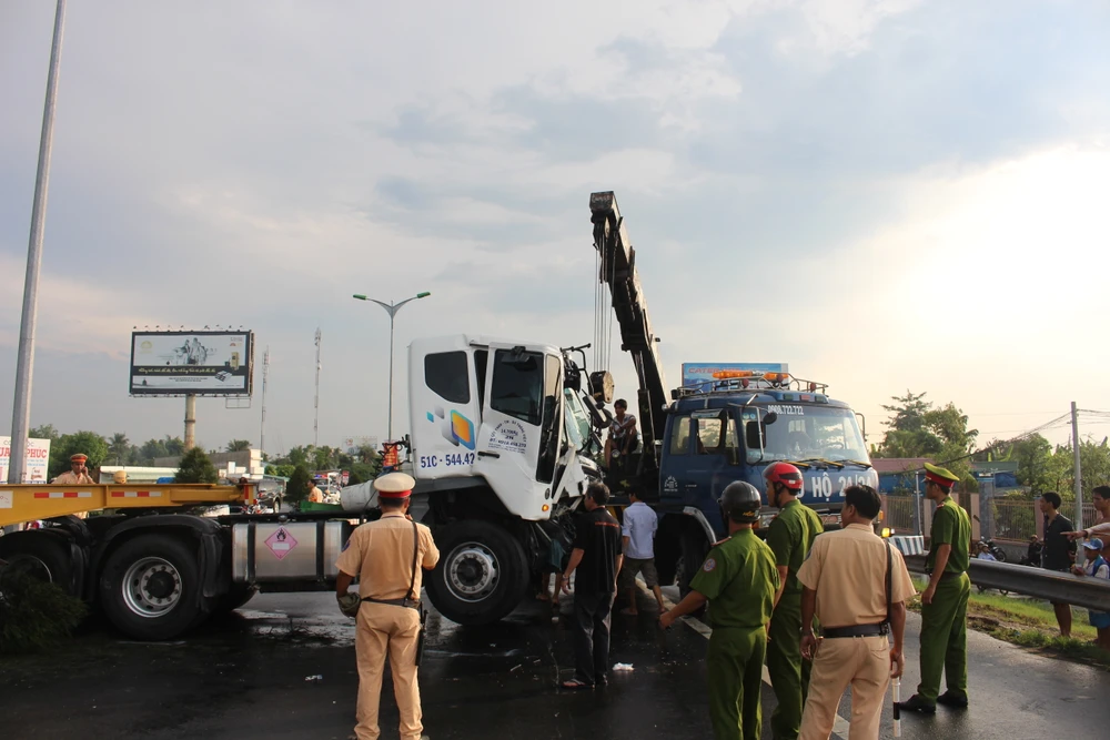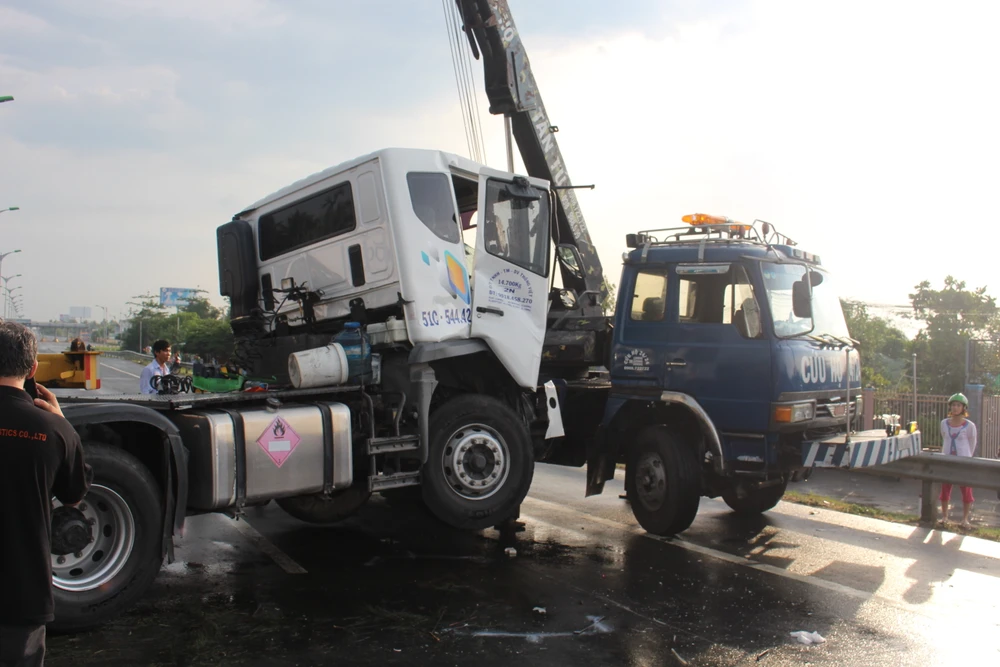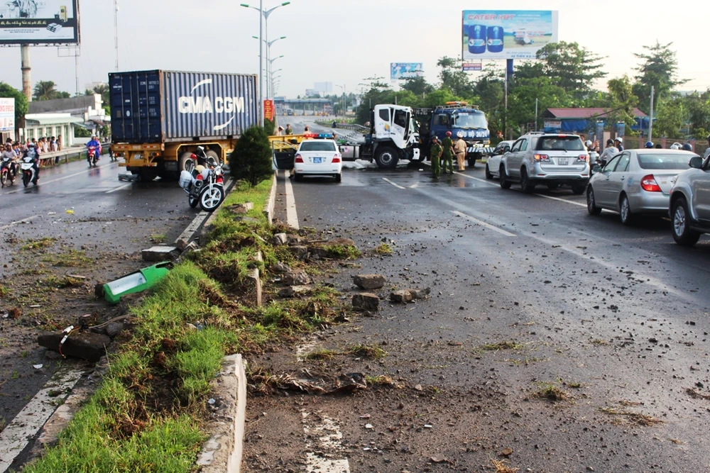 Sau cú va chạm này, chiếc xe tiếp tục lao sang làn đường ngược lại tông văng nhiều mét dải phân cách rồi lao sang lại làn đường ban đầu rồi mới dừng lại hẳn. Cú làm “xiếc” của chiếc container khiến giao thông khu vực này hỗn loạn, người điều khiển phương tiện qua lại phải dạt sát lề đường để né tránh… Riêng tài xế Thanh bị thương nhẹ, còn phần đầu xe container hư hỏng, móp méo…
