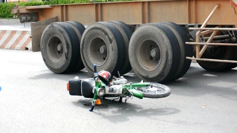 Chiếc xe container rẽ vào làn đường dành cho xe máy thì xảy ra va chạm