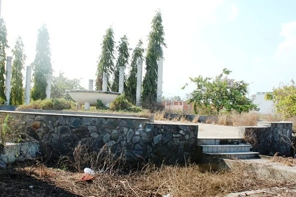 Đài phun nước, nhà dừng chân đã bị cỏ dại bao vây và xuống cấp trầm trọng